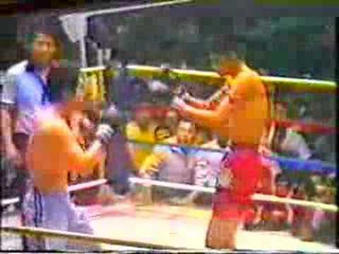 Against a tae kwon do fighter in the Martial Arts world championships held in Rajadamnern: