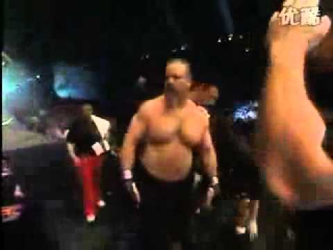 I was gonna say he took Tank Abbott down (lol) but I guess even there Tank did most of the work for him. . .