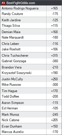 I think Chris Tuchscherer is worth a look at +305.Gonzaga has done nothing his whole career besides one head kick to Cro Cop.He has lost 3 of 5 since then with the two wins being against no bodies.I think the price is high because Gonzaga is still living off he Cro Cop KO2015 MMA BETTING CHAMP