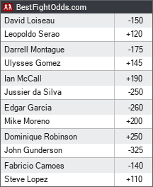 Leopoldo Serao is a high level bjj guy. But I don't think his takedowns are very good. If I didn't vow to never bet against bjj again, I would consider Loiseau (I vowed it after Yahya beat Brown, then I broke it by betting on Fedor by KO over Silva, but I am serious now).2012: +19.33