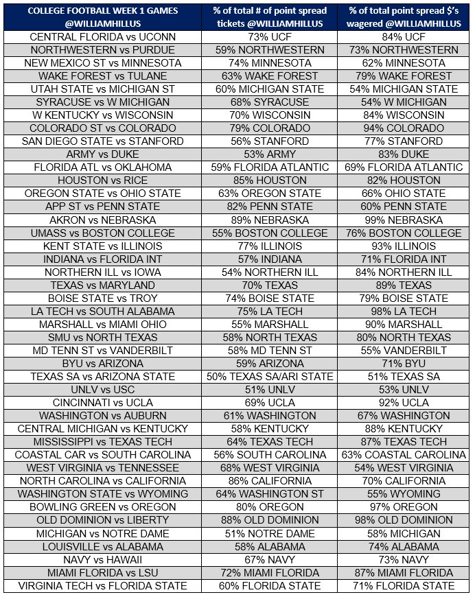 Week 1 William Hill Betting Trends